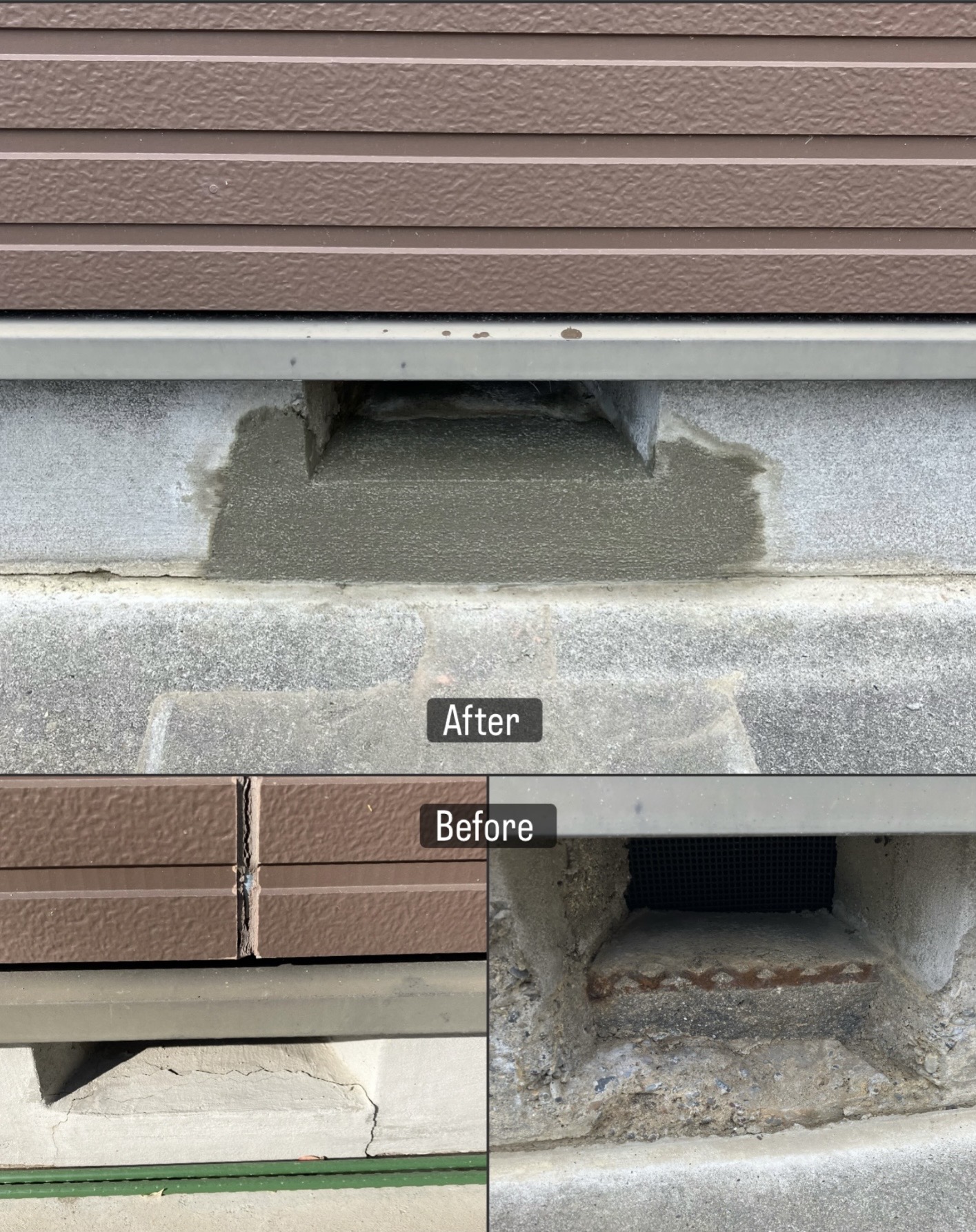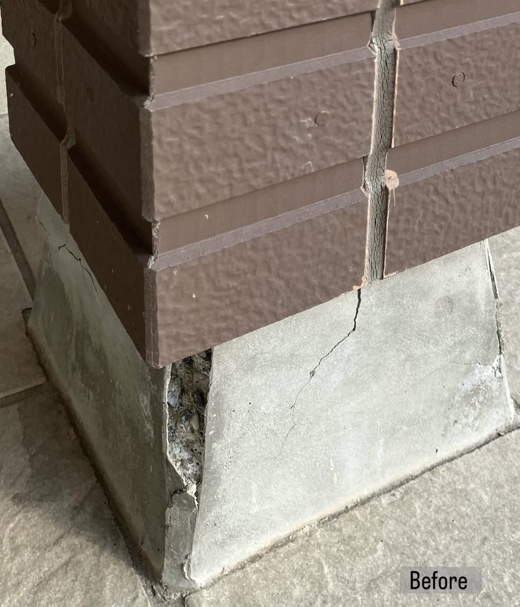 外壁コーキングと併せて基礎補修工事を行いました。
